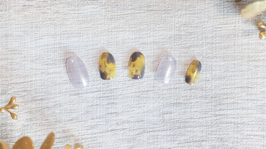 わざとところどころにブラウンを小さく塗ってぼかすと本物のべっ甲っぽい仕上がりになるわよ!