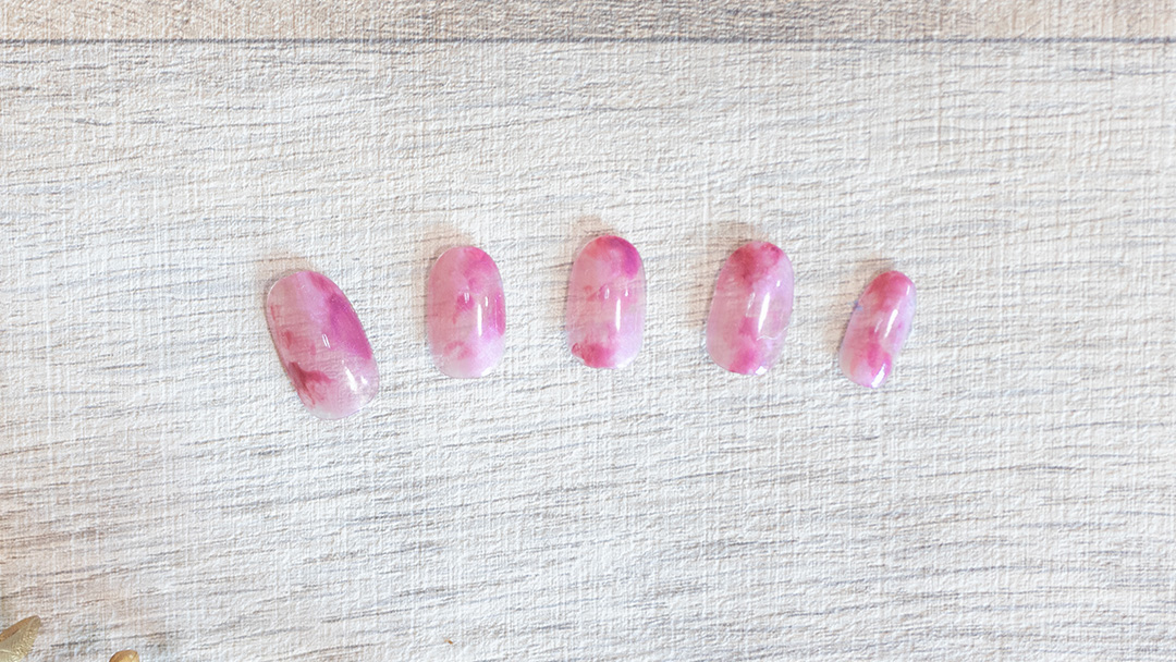 人差指と中指、小指に「デボラリップマン ジェルネイルポリッシュ DANCING ON MY OWN」を塗り足しネイルカラー薄め液を筆に含ませてぼかします。