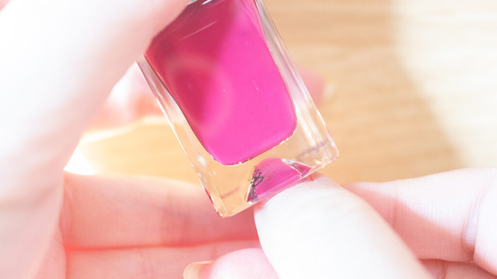 更に、ベネチアンガラス製のボトルデザインは世界的アートディレクターのFabien Baron (ファビアン・バロン) が手掛けており、ボトルの底に爪を置くだけで、購入前に色を試すことができるように設計されています。店舗で購入する時に実際に自分の爪に色が乗った状態を確認したいという時に便利なボトル設計になっています。