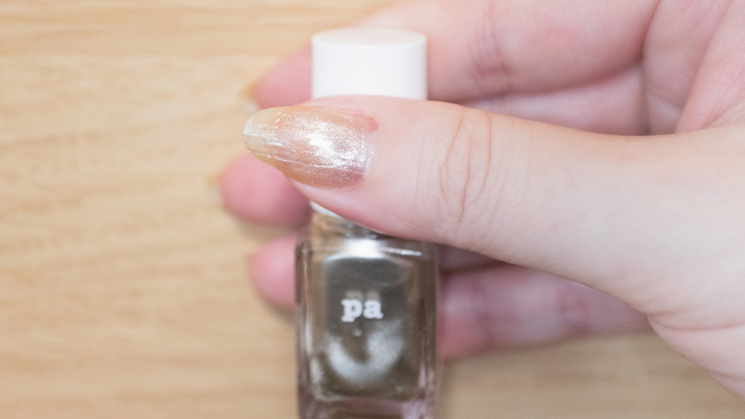 筆はやわらかい平筆タイプ。筆が扇状に広がるので塗りやすい筆だと感じましたがボトル自体が小さいので必然的に筆も小さく少し使いにくいと感じる方もいるかもしれません。