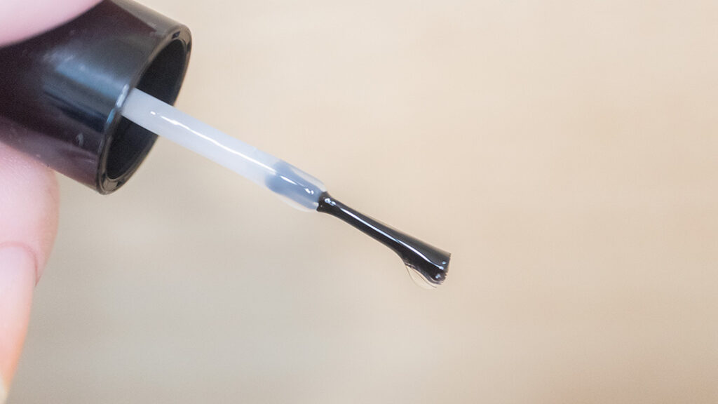 伸びのよい緩めのテクスチャーで使用していくうちに感じるねばつきやドロドロに固まりにくいテクスチャーです。使用したネイルカラーを引きずりにくくにじみにくい処方。